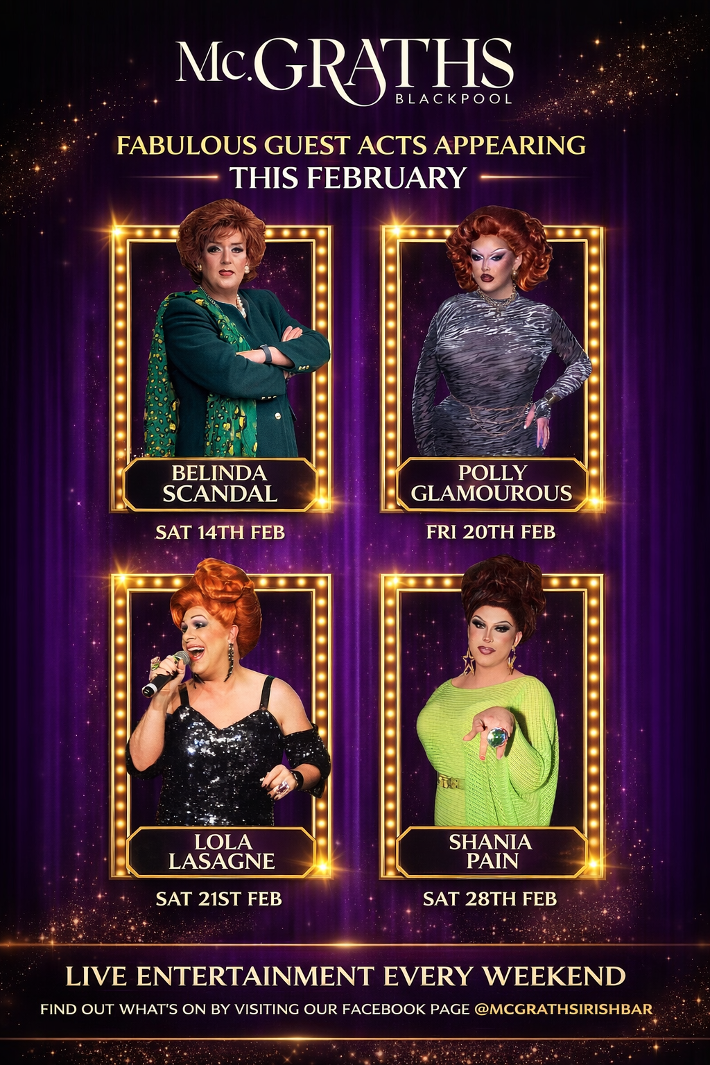 We’re proud to be gaining a reputation as one of the top venues for live entertainment, regularly hosting some of the biggest cabaret acts from across the UK and beyond. In fact, in 2024, our little bar was honoured to be a finalist for 'Night time Venue of the Year' at the Blackpool Pride Awards!